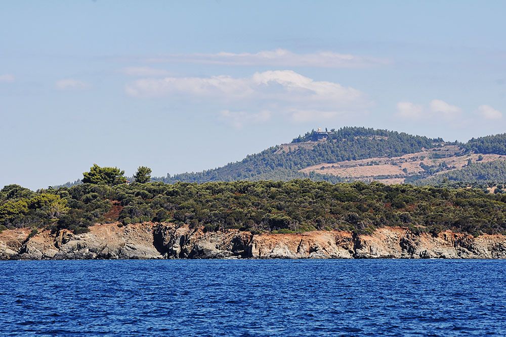 De volgende ochtend staan we vroeg op voor een boottocht door de Golf van Toroneos. We stappen aan boord van een glasbodemboot en nemen plaats op de voorsteven. De boot vult zich snel met enthousiaste dagjesmensen. We zetten vervolgens koers richting Sithonia, de tweede ‘vinger’ van Chalkidiki. In de verte doemt de indrukwekkende silhouet van de berg Athos op.