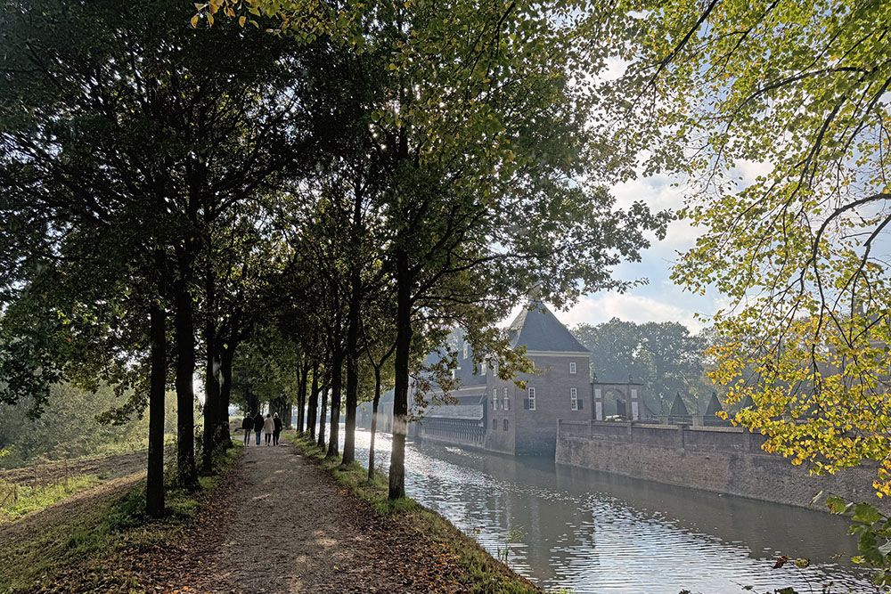 De route leidt ons tussen weilanden met paarden door naar de bosrand van landgoed Zuylestein. Bij een kunstmatig aangelegde, langgerekte waterplas zien we enkele wandelaars een foto maken van een zwerm watervogels. De gevleugelde dieren moeten hier echter niets van hebben. Luid protesterend vliegen ze kwakend naar rustiger water. Dit zal niet de bedoeling zijn geweest van het stelletje, maar het tafereel levert wel fraaie foto’s op!