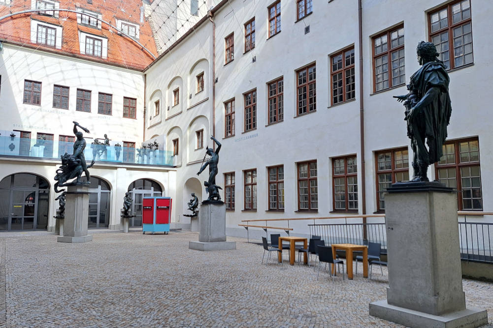 Het Maximilian Museum is gehuisvest in een schitterend patriciërshuis. Het museum richt zich op de kunstnijverheid waar Augsburg wereldberoemd om werd. In de centrale, door glas overkapte binnenplaats, staan de originele beelden van de stadsfonteinen (om ze tegen de elementen te beschermen). De collectie goud- en zilversmeedwerk is ronduit verbijsterend. We zien hier hoe verfijnd de Augsburgse ambachtslieden waren. Niet voor niets werden hun producten door heel Europa geëxporteerd naar de meest exclusieve hoven. Het is de perfecte plek om te begrijpen waarom de stad ooit zo onmetelijk rijk was.