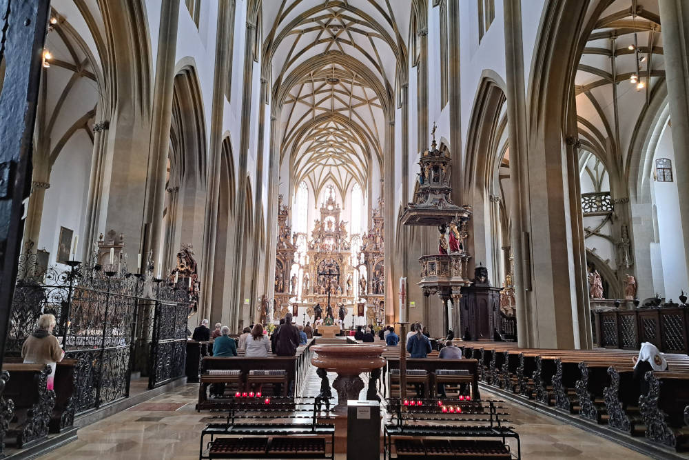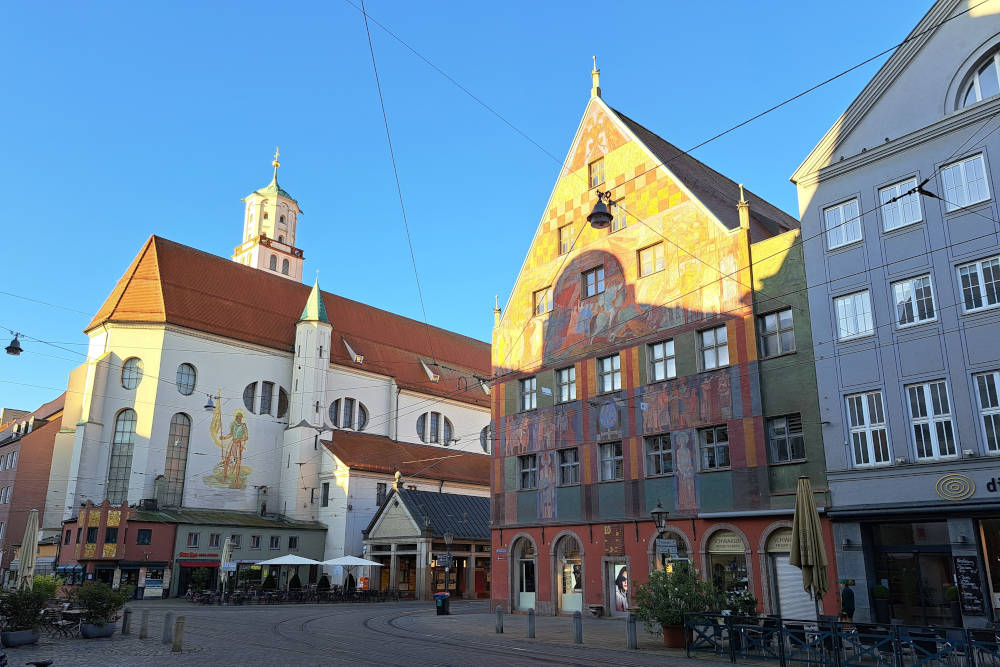 Deze kerk is een toonbeeld van de Augsburgse geschiedenis. Het is een van de weinige plekken waar een katholieke basiliek en een protestantse kerk (de kleine St. Ulrich) direct naast elkaar staan. Een mooi symbool voor de religieuze vrede van Augsburg uit 1555. Het interieur van de grote basiliek is overweldigend. De enorme eikenhouten altaren zijn meesterwerken van houtsnijkunst en trekken direct de aandacht. In de crypte rusten de beschermheiligen van de stad: Ulrich, Afra en Simpertus. De kerk straalt een enorme rust uit, ondanks de rijkdom aan versieringen en de monumentale afmetingen van het schip.