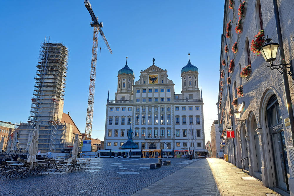 Het Rathaus van Augsburg is een van de belangrijkste civiele renaissance-gebouwen ten noorden van de Alpen. Het gebouw straalt een onmetelijk zelfvertrouwen uit, passend bij de status van Augsburg als rijksstad. Met de twee karakteristieke uivormige torens en de enorme rijksadelaar op de gevel is het het onbetwiste middelpunt van de stad.