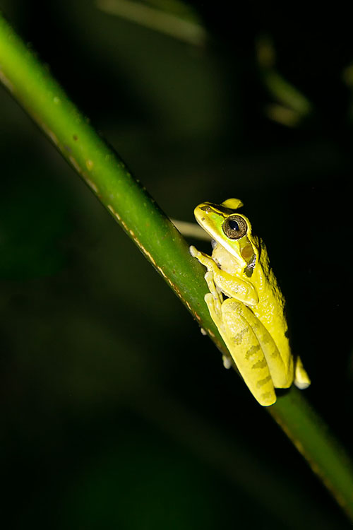 Een Frog Tour is een avondwandeling door het regenwoud met een deskundige gids om nachtdieren te spotten, met name verschillende soorten kikkers en padden. De tour duurt ongeveer twee uur en start rond zonsondergang. De gids voorziet je van een zaklamp en laarzen om het terrein goed te kunnen verkennen.