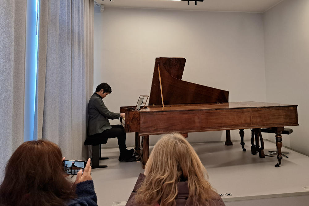 Tijdens ons bezoek maken we iets heel bijzonders mee in de kleine concertzaal van het museum. Een Japanse pianist neemt plaats achter het instrument en speelt enkele stukken van de meester. De klanken vullen de intieme ruimte en we luisteren samen met de andere bezoekers ademloos toe. Het is werkelijk prachtig om de muziek te horen op de exacte plek waar het leven van dit muzikale genie ooit begon.