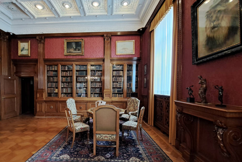 We hebben het geluk dat we een rondleiding kunnen volgen door de officiële ontvangstruimtes van het gebouw. We zien de kamers waar grote staatshoofden werden ontvangen voor belangrijke diners en politiek overleg. Het uitzicht op de Rijn vanaf het terras is werkelijk schitterend en geeft het geheel een koninklijke allure. Hoewel het gebouw een enorme waardigheid uitstraalt, wordt het nergens overdreven protserig of afstandelijk.