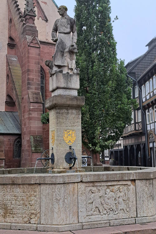 Vlakbij het Altes Rathaus vinden we de Tijl Uilenspiegelfontein. Dit standbeeld brengt ons bij een van de bekendste en grappigste legenden van Einbeck. Tijl Uilenspiegel, de vagebond en grappenmaker, komt volgens de overlevering naar de stad. Zijn opdracht is simpel: het beroemde Einbecker bier brouwen. Tijl was tijdens zijn werk echter veel meer geïnteresseerd in de mooie brouwersdochter dan in zijn brouwketel. Hij besteedde meer tijd aan flirten dan aan zijn opdracht en viel uiteindelijk in slaap. Daardoor ging het brouwen mis: het bier werd ondrinkbaar. De fontein is een knipoog naar de menselijke aard en een mooie herinnering aan de rijke biergeschiedenis van de stad.