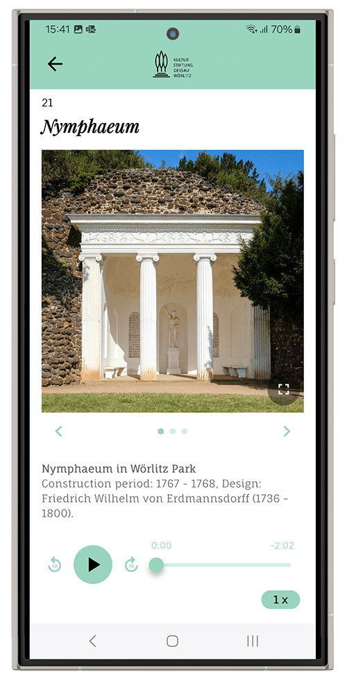 De app vormt een uitstekende ondersteuning bij het bezoek aan Gartenreich Dessau-Wörlitz. Het maakt de unieke ervaring in dit UNESCO Werelderfgoed nog completer.