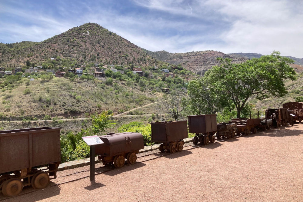 In een van de zalen bekijken we een enorme maquette van de ondergrondse tunnels. We zien hoe het gangenstelsel zich als een spinnenweb onder het dorp Jerome uitstrekt. De gids legt uit dat er meer dan honderd kilometer aan tunnels in de berg zitten. Buiten op het terrein bewonderen we de enorme machines die het erts omhoog brachten. We zien ook de restanten van de smelterij waar het koper uit de stenen werd gehaald. Het uitzicht over de vallei is vanaf dit punt werkelijk weids en indrukwekkend te noemen. We maken foto’s van de roestige tandwielen die scherp afsteken tegen de blauwe horizon. Dit park geeft ons een goed beeld van de technische hoogstandjes uit die periode.