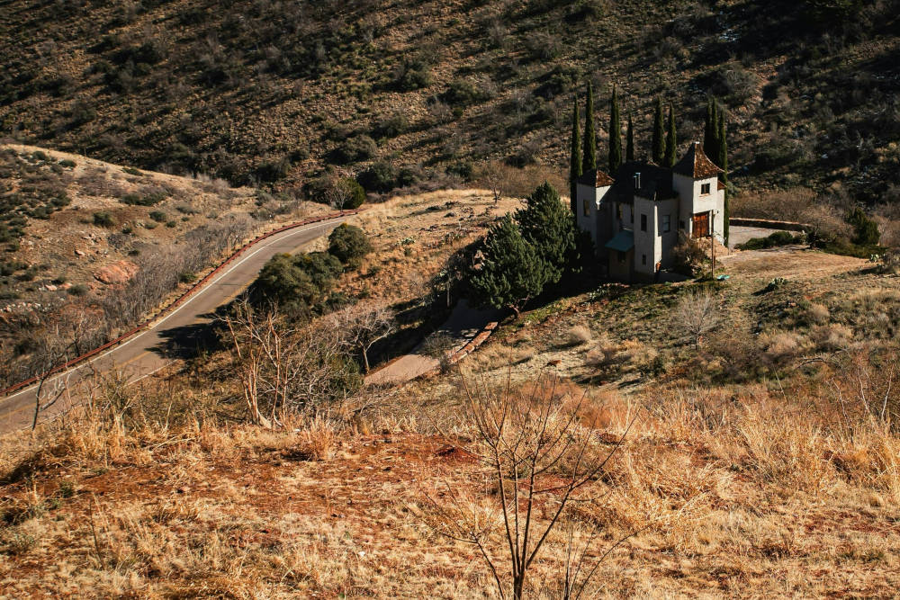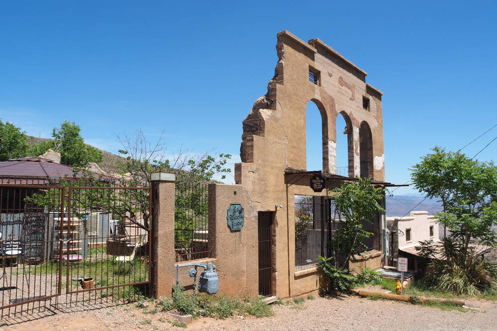 Een andere grappige anekdote gaat over de gevangenis van het dorp. Door de zware mijnbouw en aardverschuivingen begon de grond onder Jerome te schuiven. De betonnen gevangenis gleed op een dag gewoon ruim zestig meter naar beneden. Het gebouw bleef wonderbaarlijk genoeg grotendeels intact tijdens deze onvrijwillige reis. Vandaag de dag staat de gevangenis nog steeds op die nieuwe plek onderaan de straat. We zien ook gebouwen die met dikke stalen kabels aan de rotsen vastzitten. Zonder die hulp zouden ze waarschijnlijk allang de diepte in zijn gestort.