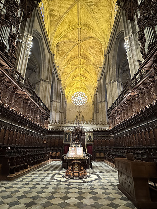 De kathedraal van Sevilla is de grootste gotische kathedraal ter wereld en een van de grootste kerken ooit gebouwd. Het gebouw is ruim 135 meter lang, 100 meter breed en heeft een hoogte van bijna 42 meter in het middenschip.