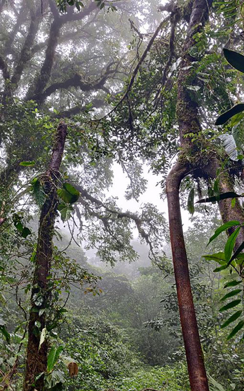 Wat is een nevelwoud eigenlijk? De naam verklapt het al. Het is een bos dat regelmatig in wolkenmist gehuld is. Deze constante vochtigheid zorgt voor weelderige begroeiing. Bomen, planten en mossen groeien hier uitbundig. De natuur is overal om ons heen.