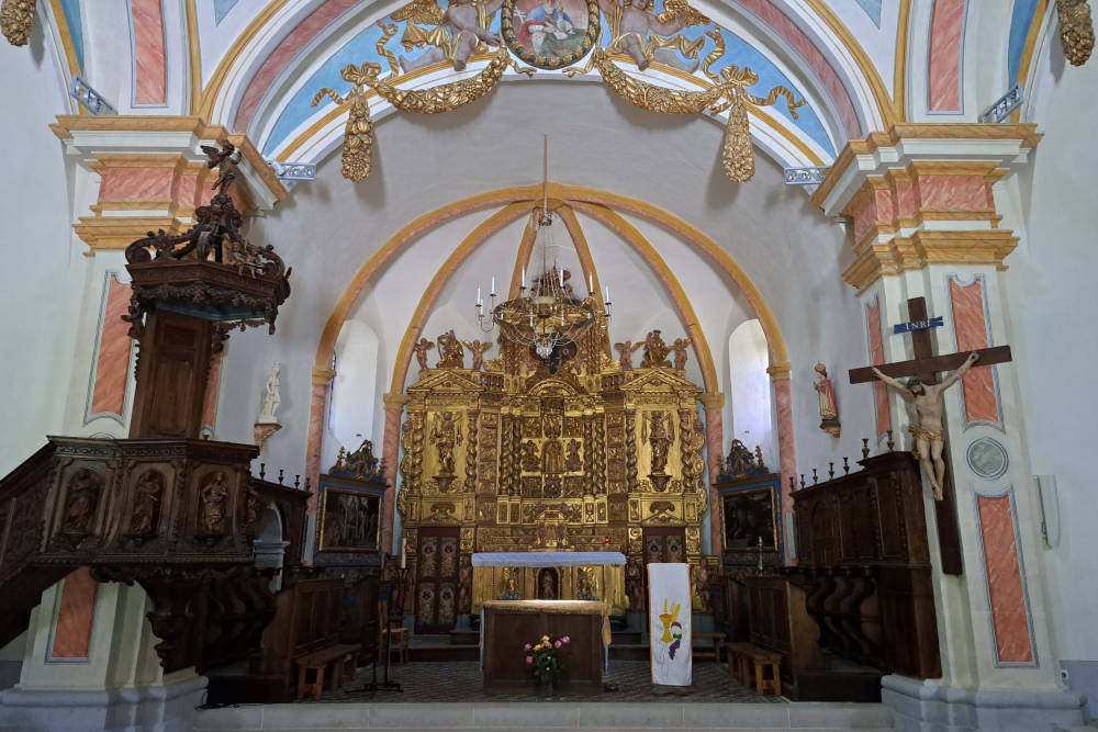 We parkeren de auto vlakbij de prachtige kerk Notre Dame de la Vie. Dit is meteen een uitstekende gelegenheid om te beginnen met een stukje cultuur. Deze kerk, gelegen in het gehucht Saint-Martin de Belleville, dateert uit de 17e eeuw. Ze is beroemd vanwege haar zeldzame barokke altaarstuk. Dit houtsnijwerk is rijk versierd en prachtig verguld, typisch voor de Savoie. De kerk is een oase van rust in de verder zo actieve vallei. Neem zeker even de tijd om de serene sfeer op te snuiven.