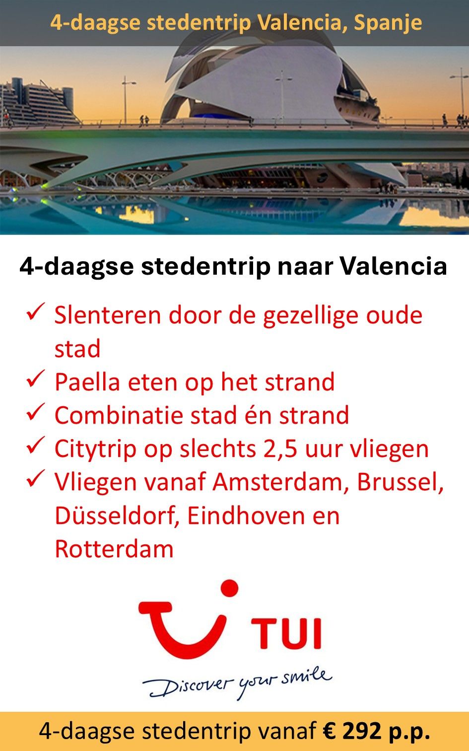 Ja, Valencia is ideaal voor een weekendje weg. De stad biedt een ideale combinatie van cultuur, strand en lekker eten. De compacte binnenstad is perfect om te voet te verkennen. Daarnaast zijn er mooie stranden vlakbij, ideaal voor ontspanning. Valencia heeft een bruisend nachtleven en gezellige terrasjes. Zo haal je in korte tijd het beste uit je stedentrip.