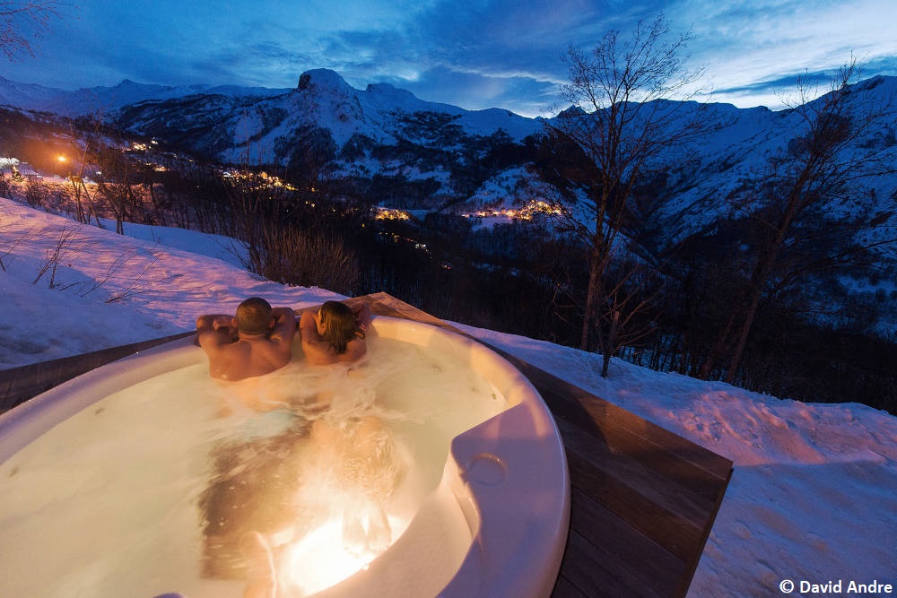 Na alle afdalingen is het tijd voor ontspanning. We zoeken de warmte op. La Belle Vie is onze bestemming. Dit is het spiksplinternieuwe wellness centrum van Saint-Martin. We trekken onze badkleding aan en gaan genieten. Er zijn zwembaden, sauna’s, stoombaden, relaxruimtes, lekker modern en schoon. Maar het hoogtepunt is buiten. We stappen in de whirlpool, het water is er lekker warm. De stoom trekt op. Vanuit de warme bubbels kijken we uit over de besneeuwde bergen. De Alpenreuzen naast ons zijn bedekt met een dik pak sneeuw. Het contrast tussen het warme water en de koude bergen is fantastisch.